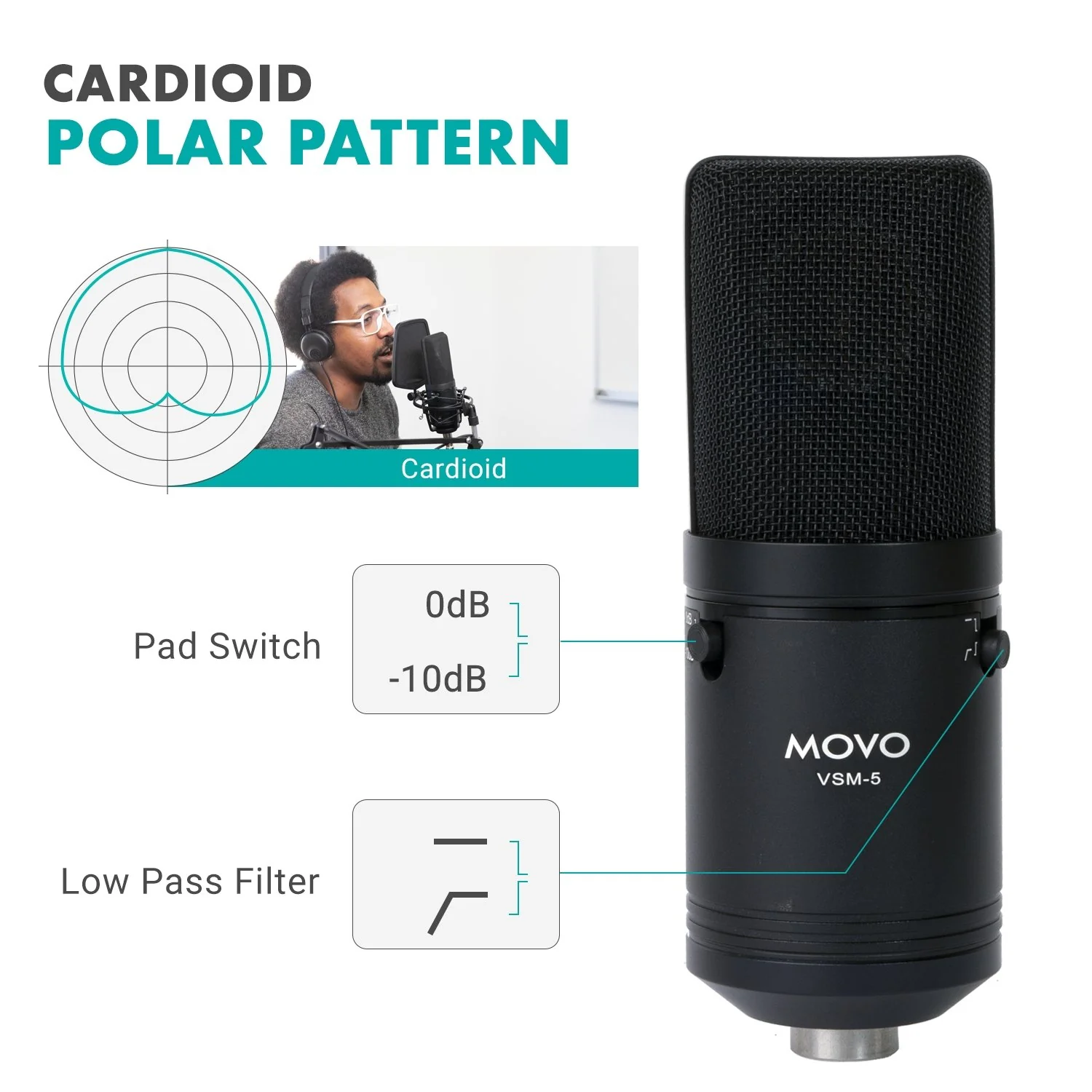 VSM-5 | Diaphragm XLR Cardioid Condenser Mic | Movo
